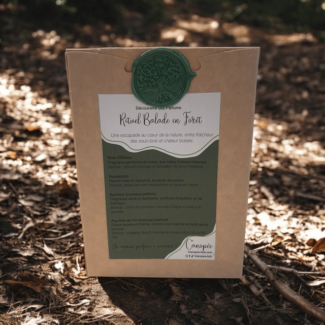 Emportez votre intérieur dans une promenade boisée avec le kit Balade en Forêt. Ce kit contient des fondants parfumés aux notes de eucalyptus, bois d’ébène, aiguilles de pin et bambou, pour une ambiance fraîche et naturelle.